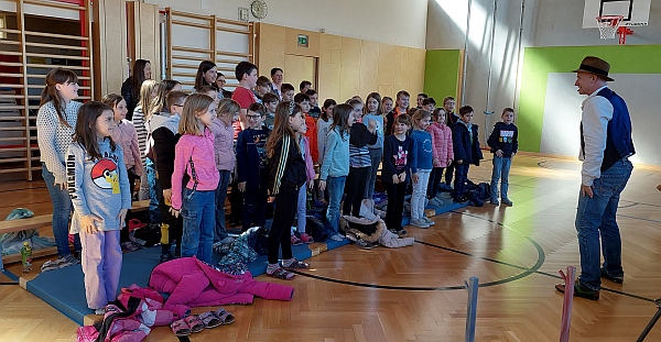 Gernot Kranner ist ein gern gesehener Gast an unserer Volksschule. Am Donnerstag, den 20.03.2025 besuchte er uns mit dem Mitmachmusical "der Zauberer von Oz" und begeisterte dabei sowohl die Kinder als auch die Lehrkräfte mit seinen musikalischen Darbietungen.